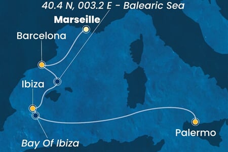 Civitavecchia (Rome) (Itálie) - Janov (Portofino) (Itálie) - Marseille (Provence) (Francie) - Valencia (Španělsko) - Ibiza (Baleari Is.) (Španělsko) - Cagliari (Sardinie) (Itálie) - Civitavecchia (Rome) (Itálie). Loď je součástí flotily plavební společnost MSC…