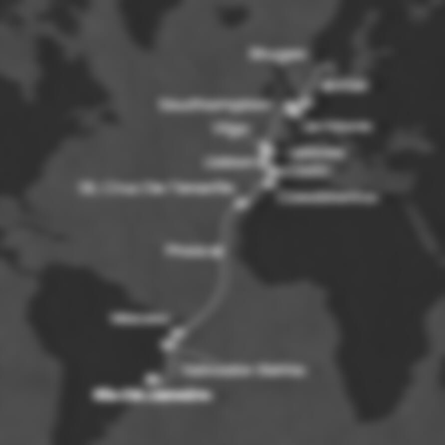 Rio de Janeiro (Brazílie) - Salvador de Bahia (Brazílie) - Maceio (Brazílie) - PRAIA - St. Cruz de Tenerife (Španělsko) - Casablanca (Maroko) - Cadiz (Španělsko) - Lisabon (Portugalsko) - Leixoes (Portugalsko) - Vigo (Španělsko) - Le Havre (Francie) - Southampton (Velká Británie) - Bruges (Belgie) - Kiel (Německo).