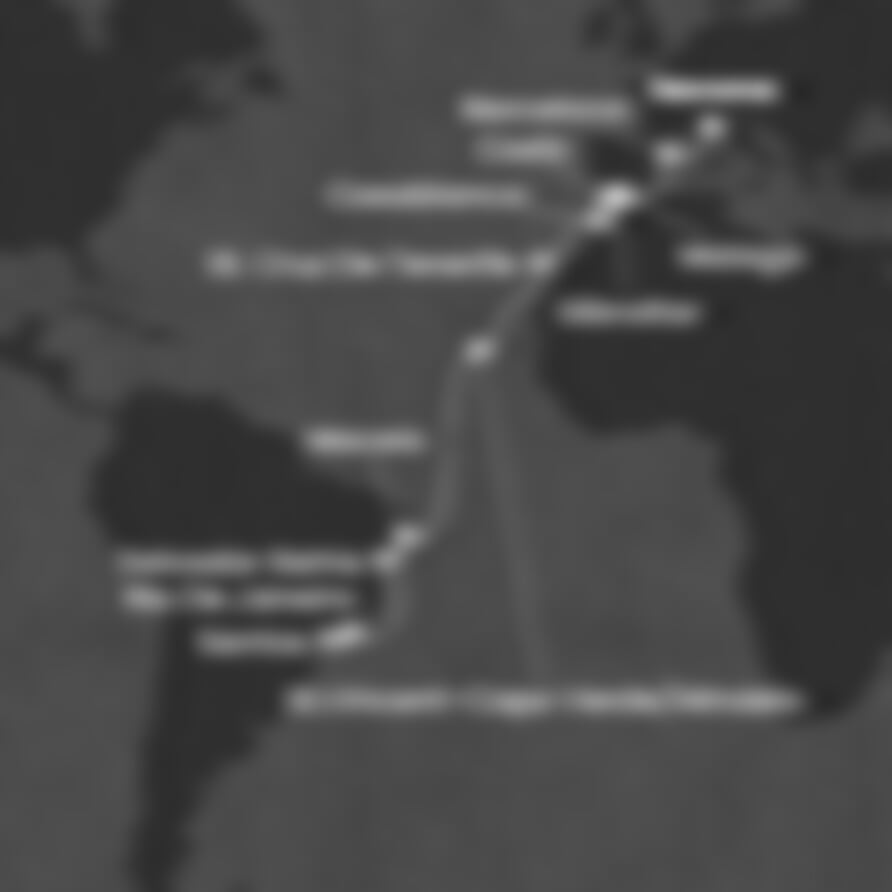 Savona (Itálie) - Barcelona (Španělsko) - Malaga (Španělsko) - Gibraltar (Velká Británie) - Cadiz (Španělsko) - Casablanca (Maroko) - St. Cruz de Tenerife (Španělsko) - Mindelo (Kapverdy) - Maceio (Brazílie) - Salvador de Bahia (Brazílie) - Rio de Janeiro (Brazílie) - Santos (Brazílie).