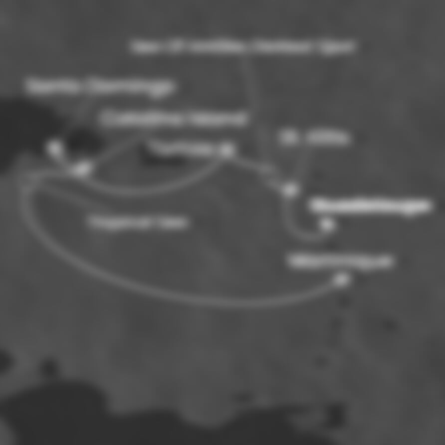 Guadeloupe (Nizozemské Antily) - St. Kitts (Nizozemské Antily) - Tortola (Panenské o. (britské)) - Santo Domingo (Dominikán.rep.) - Catalina Island (Dominikán.rep.) - Martinik (Nizozemské Antily).