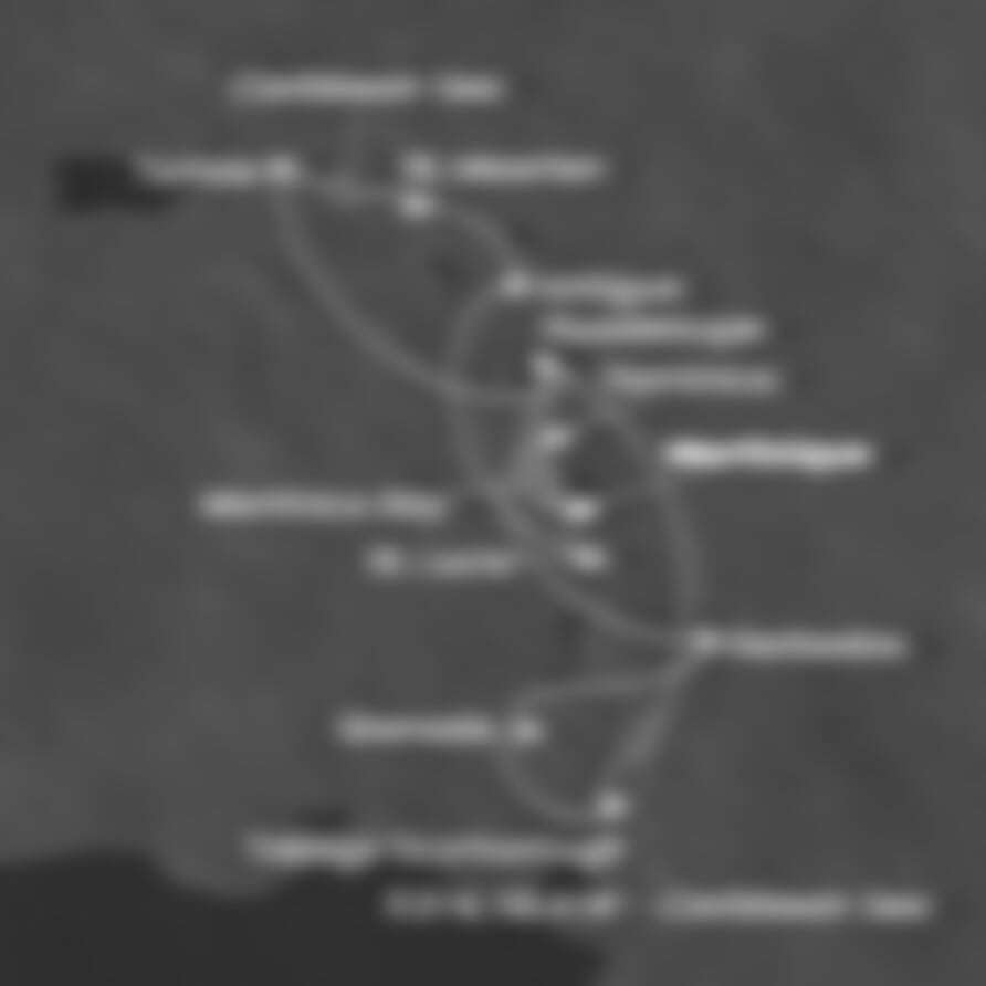 Martinik (Nizozemské Antily) - Guadeloupe (Nizozemské Antily) - Tobago Scarborough (Trinidad a Tobago) - Grenada (Nizozemské Antily) - Barbados (Nizozemské Antily) - Roseau (Dominika) - Martinik (Nizozemské Antily) - Guadeloupe (Nizozemské Antily) - Tortola (Panenské o. (britské)) - St. Maarten (Nizozemské Antily) - Antigua (Nizozemské Antily) - St. Lucia (Nizozemské Antily) - Martinik (Nizozemské Antily).