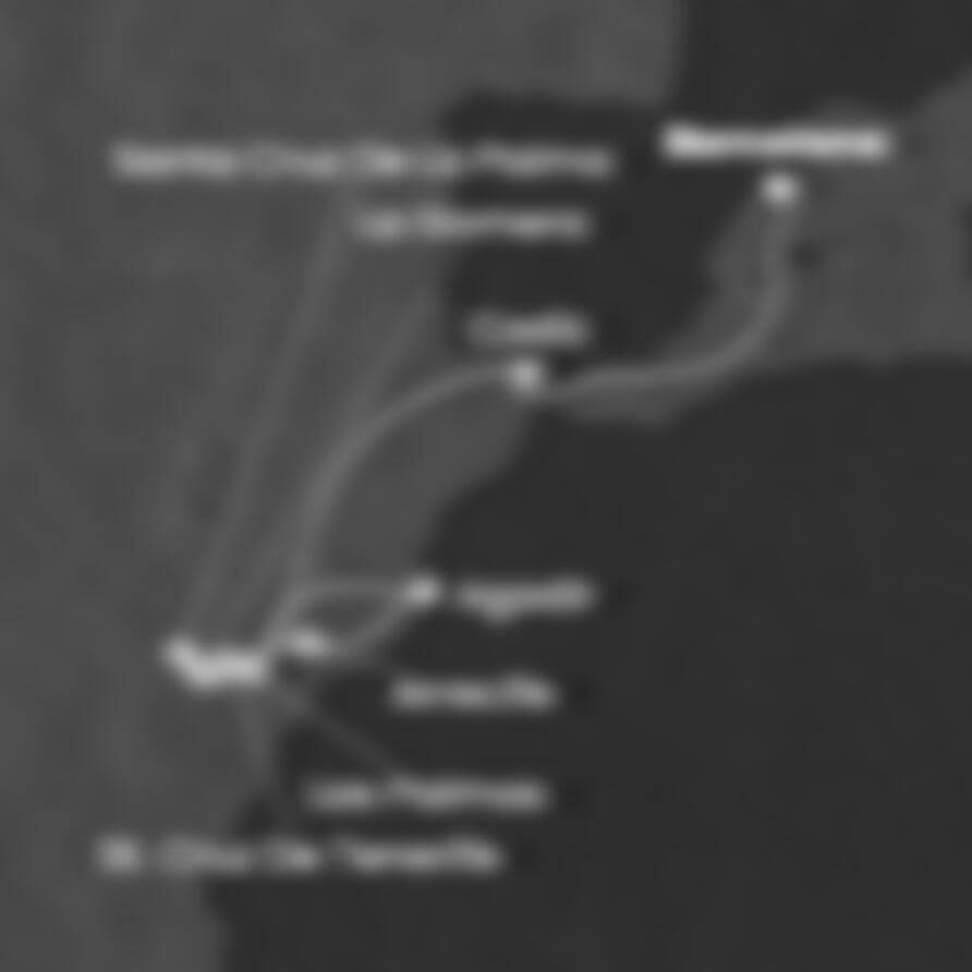 Barcelona (Španělsko) - Cadiz (Španělsko) - Las Palmas (Španělsko) - La Gomera (Španělsko) - Santa Cruz de la Palma (Španělsko) - St. Cruz de Tenerife (Španělsko) - Arrecife (Španělsko) - Agadir (Maroko) - Las Palmas (Španělsko).
