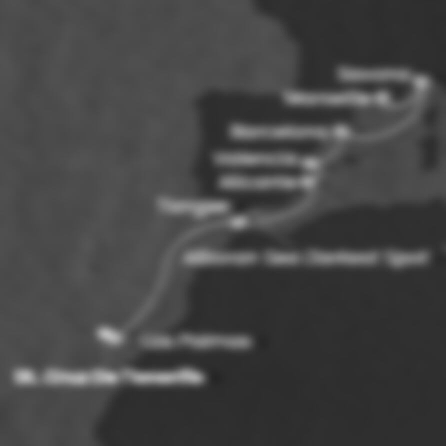 St. Cruz de Tenerife (Španělsko) - Las Palmas (Španělsko) - Tanger (Maroko) - Alicante (Španělsko) - Valencia (Španělsko) - Barcelona (Španělsko) - Savona (Itálie) - Marseille (Francie).