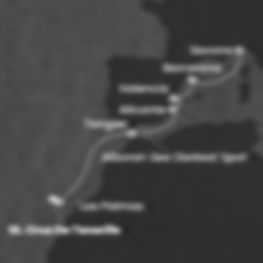 St. Cruz de Tenerife (Španělsko) - Las Palmas (Španělsko) - Tanger (Maroko) - Alicante (Španělsko) - Valencia (Španělsko) - Barcelona (Španělsko) - Savona (Itálie).