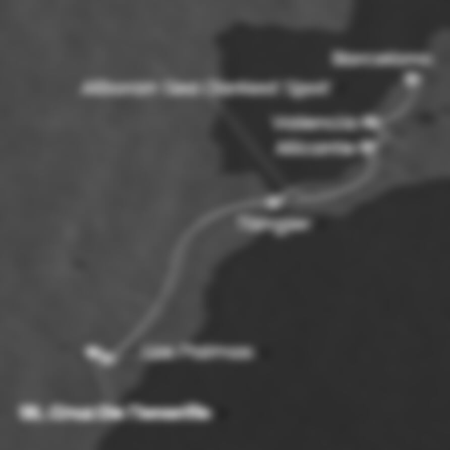 St. Cruz de Tenerife (Španělsko) - Las Palmas (Španělsko) - Tanger (Maroko) - Alicante (Španělsko) - Valencia (Španělsko) - Barcelona (Španělsko).