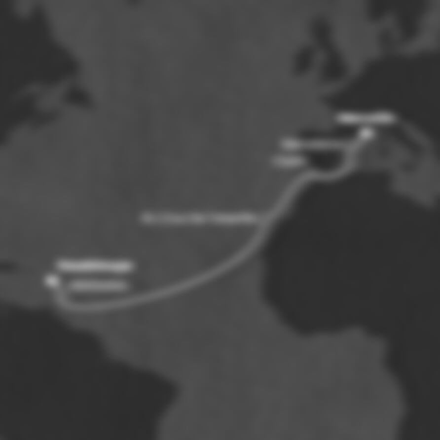 Marseille (Francie) - Barcelona (Španělsko) - Cadiz (Španělsko) - St. Cruz de Tenerife (Španělsko) - Barbados (Nizozemské Antily) - Guadeloupe (Nizozemské Antily).
